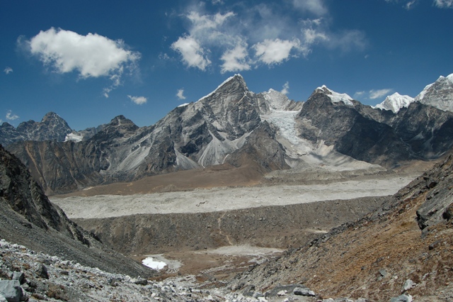 Po dni odpočinku v Lobuche vyrážíme brzy ráno k sedlu Kongma La (5 535 m n.m.). Tak trochu máme pocit, že nebudeme mít první den co dělat. Ještě z první hrany boční morény máme pocit, že sedlo je opravdu na dosah. Průchod splazem ledovce Khumbu nám trvá něco kolem hodiny, a to ještě za vydatného přispění italské skupiny se šerpou před námi, kterou v bludišti jezírek a balvanů pronásledujeme. Z druhé morény již tolik optimističtí nejsme. Nakonec nám trvalo téměř celé odpoledne než jsme se vyškrábali až do sedla, kde již po našem příchodu dávno sluneční paprsek vystřídalo mrholení. Během cesty není totiž vidět samotný horizont sedla a po dosažení několika falešných hran se nálada postupně vytrácí. Těžké batohy drtí náš postup a trochu s povzdechem se díváme na vzdalující se Italy a jejich nosiče.